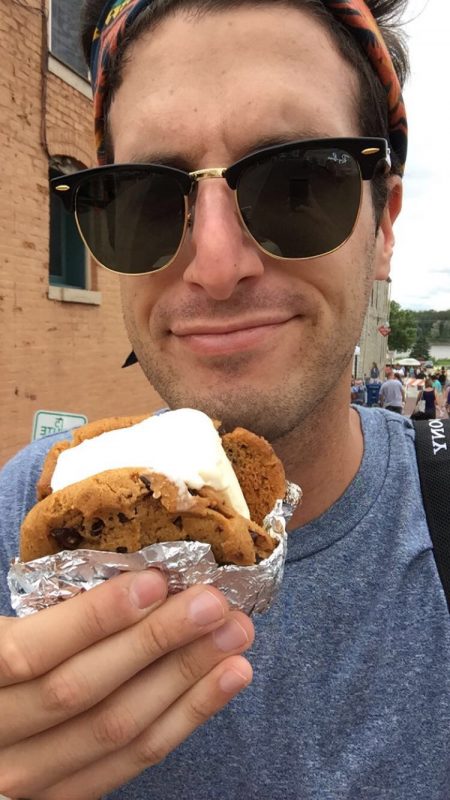 L’ho scoperto ad un festival di cibo e artigianato nella piccola città di St. Charles, in Missouri, venendo da Chicago: un tocco quadrato da 4 cm di gelato alla vaniglia chiuso da due burrosi cookies con enormi pezzi di cioccolato. Equivalente probabilmente ad un piatto di 300gr di carbonara, non tocca la coscienza dei più golosi come me. Sporca le mani, appesantisce lo stomaco, riempie il cuore.