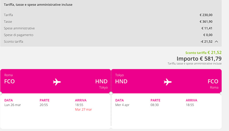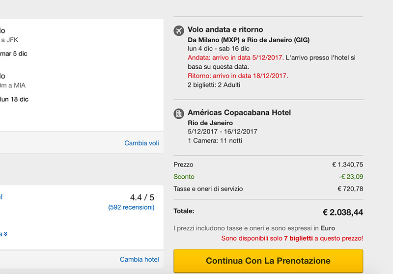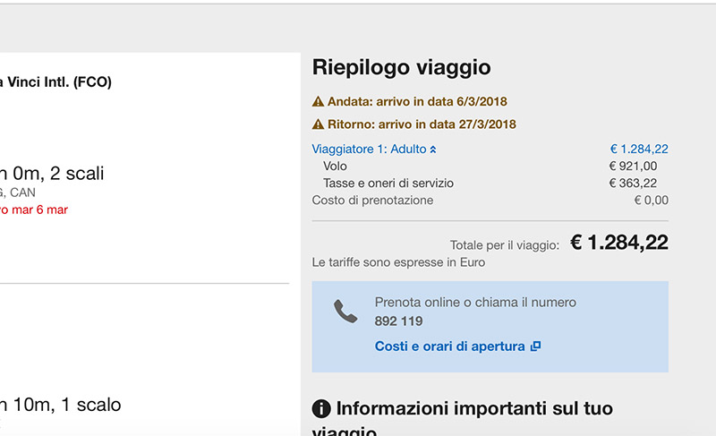 Per prenotare, sempre Expedia: date suggerite 5-25 Marzo.