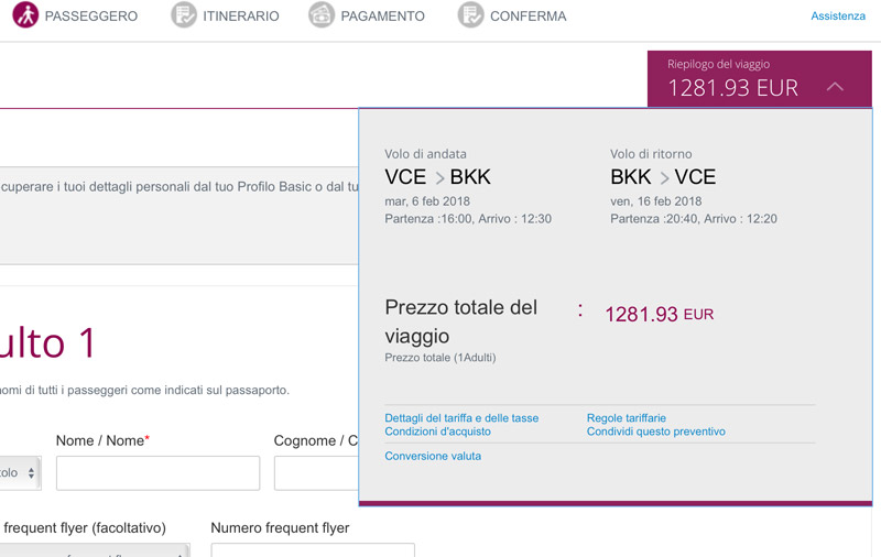 Volo in business per Bangkok: 1.281€