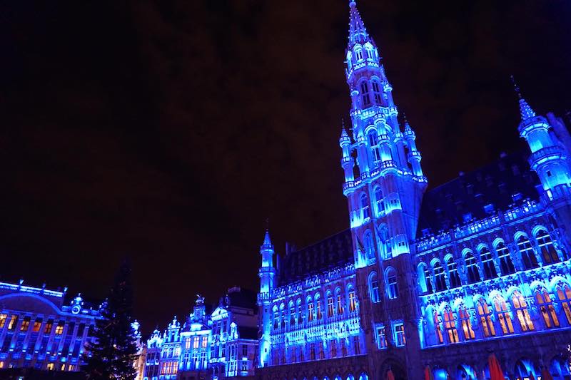 Era la mia terza volta a Bruxelles, una città che amo e che considero una delle mie preferite in assoluto e mi ha sorpreso di nuovo quando ho visto La Grand Place addobbata completamente con luci bianche e blu accese al calar del sole.